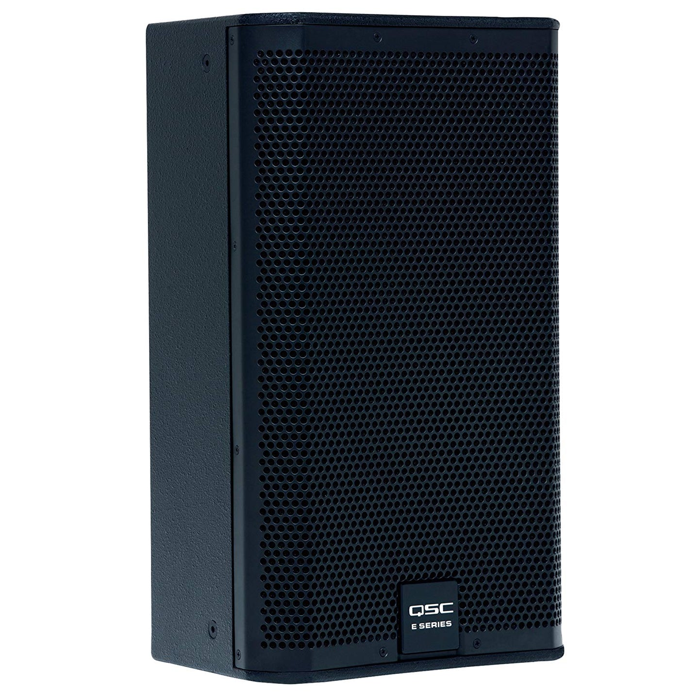 QSC E-110 is a compact, two-way loudspeaker with a 10-inch, die cast frame woofer with a 2.5-inch voice-coil housed in a multi-purpose enclosure that’s at home in stage monitor or main PA deployment. It incorporates QSC’s DMT (Directivity Matched Transition) design with a wide 85 Degree coverage. When used as a stage monitor, the E110 is angled up at a 55 Degree angle allowing it to be placed near the performer when used on a crowded stage. E Series loudspeakers will perform very well with any quality, professional power amplifier - but by taking advantage of the complete E Series Entertainment System, more performance and options are available. Today’s powered loudspeakers rely on finely tuned digital signal processing (DSP) to achieve a higher level of performance. When used with QSC GXD or PLD amplifiers or with a QSC TouchMix digital mixer, E Series loudspeakers can also take advantage of advanced DSP. QSC has developed E Series DSP settings for all three platforms. These settings support a variety of applications including live sound reinforcement (with and without subwoofers), stage monitoring, dance music and karaoke.