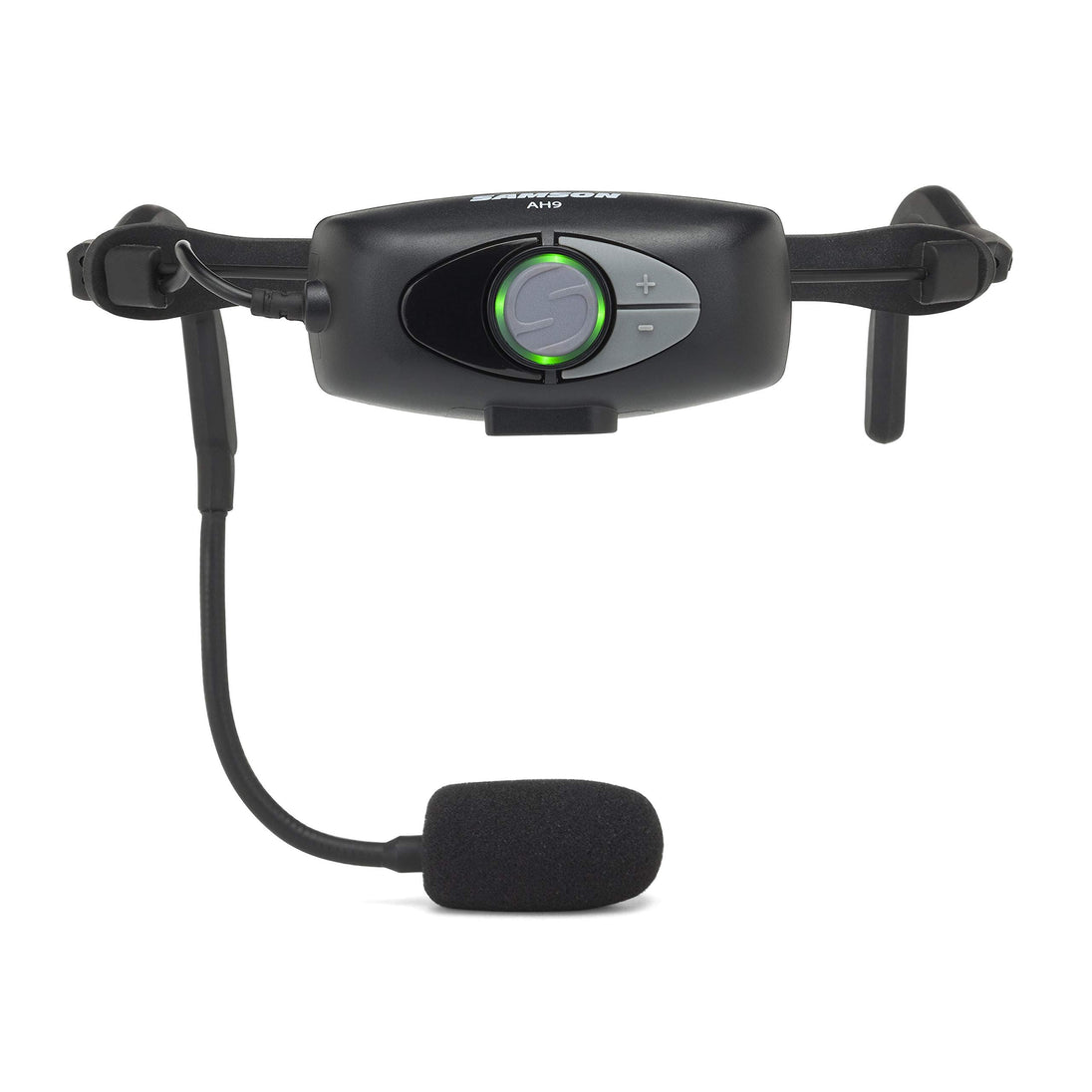 AH9/QE Transmitter only - D Band 542Mhz to 566MHz. With its micro design, the AH9 transmitter mounts directly to the included Qe headset, eliminating belt packs and cables from the setup (ideal for active performers). In addition to a 300' operating range, the AH9 features easy-access gain and mute controls, a low-battery LED indicator, and an 8-hour rechargeable lithium-ion battery.