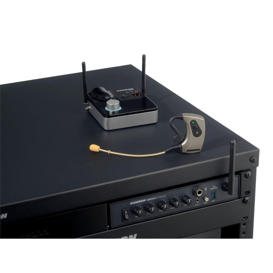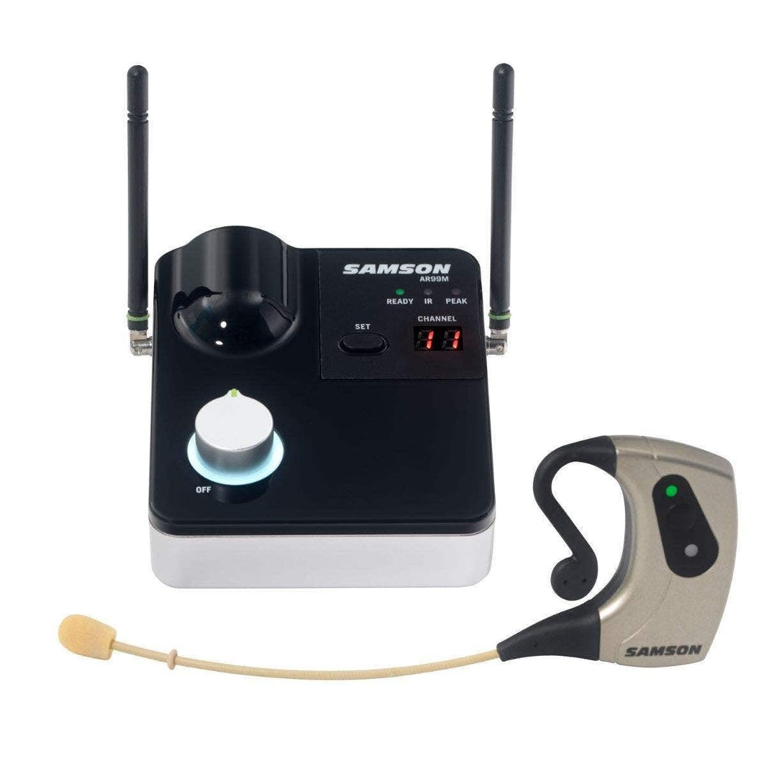 SAMSON Airline Micro ESM Earset Wireless System. Designed as the perfect tool where convenient hands-free wireless audio is necessary, such as fitness instruction, house of worship, or presentations. The AirLine Micro ESm eliminates the hassle of wearing a beltpack by keeping the entire transmitter encased in an easy-to-wear rechargeable earset that fits securely and comfortably behind the ear. With frequency-agile operation using one-touch scan setup, the AirLine Micro ESm is ready for use in any RF environment.