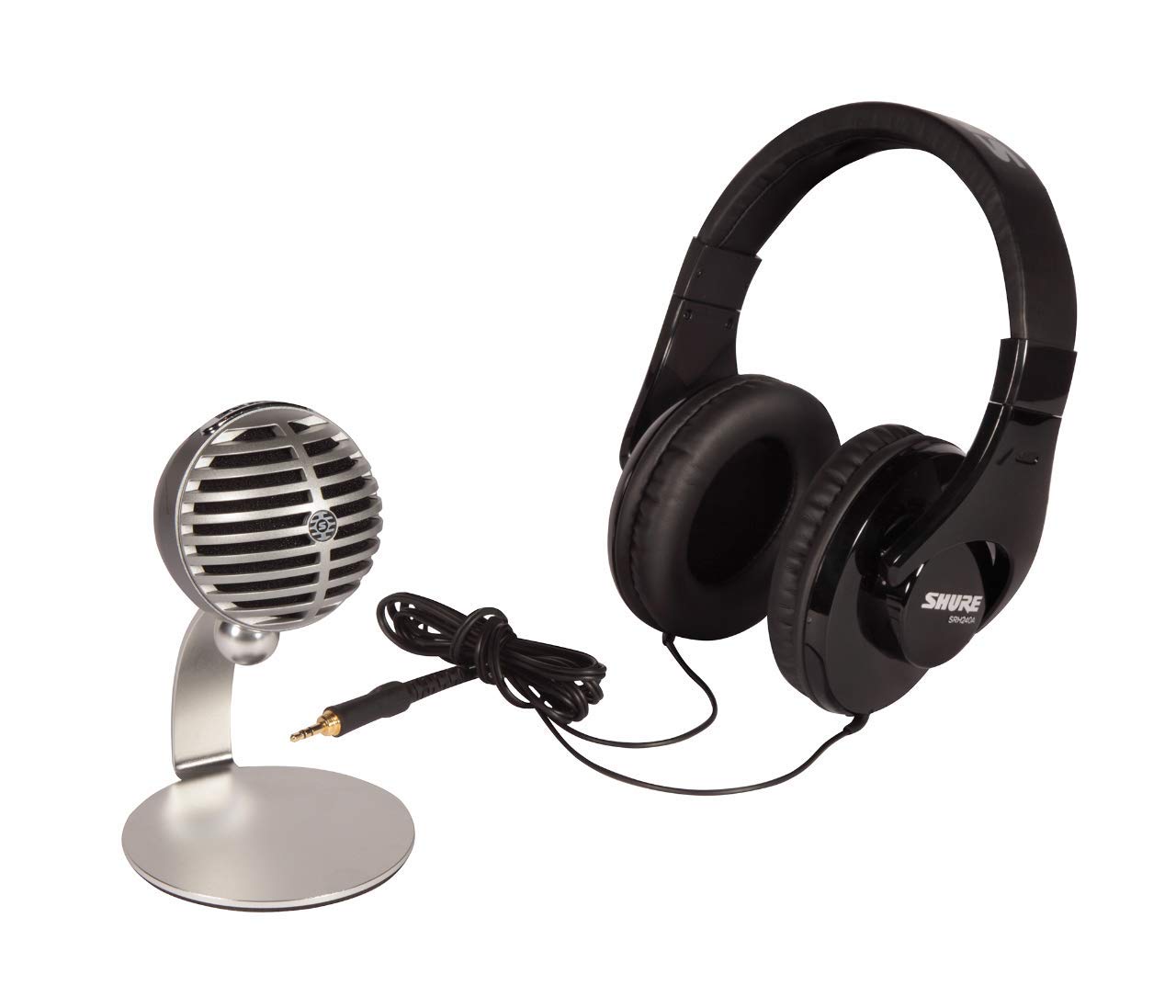 The Shure mobile recording kit enables you to record & monitor professional quality content, no matter where you are. Connect the MV5 microphone directly to your computer or mobile phone, and plug-in the SRH240A headphones to the microphone for real- time monitoring.